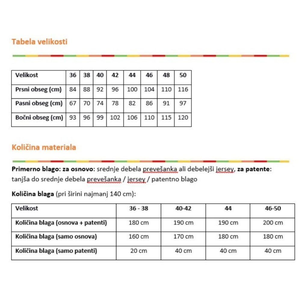• naučila se boš pripraviti kroj in izbrati ustrezno velikost zase;